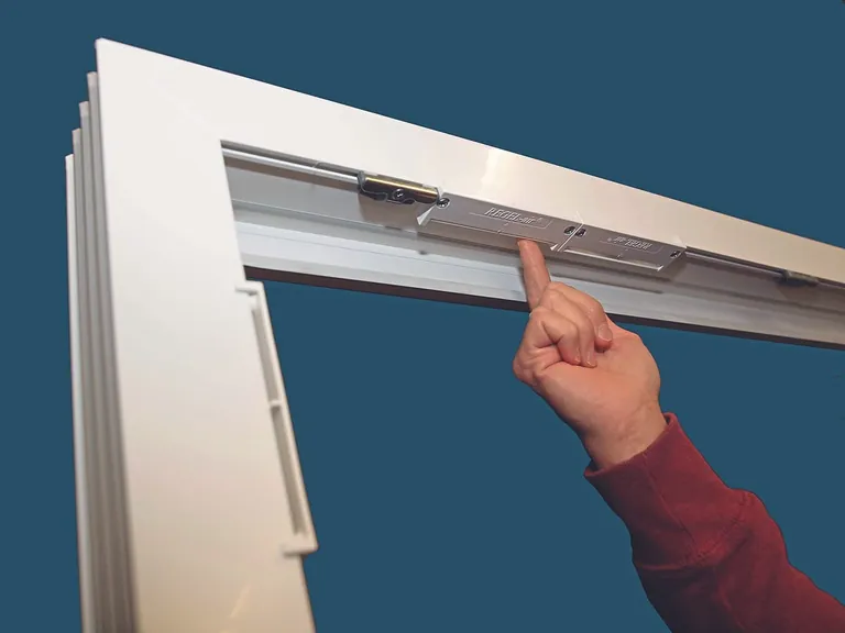 4. Schritt: Prüfen Sie die selbstregelnden Klappen der Fensterfalzlüfter auf ihre Funktion hin; drücken Sie dazu die Klappe mit einem Finger etwas an, danach sollte sie selbsttätig wieder in die Ausgangsposition gehen.