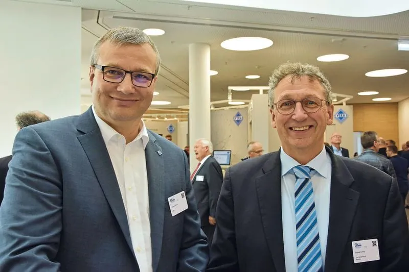 „Heute wird gefeiert mit Ihnen, unseren Kunden – ohne Sie wäre Veka nicht, was es ist“, gibt Andreas Hartleif – der Vorstandsvorsitzende beantwortete die GFF-Fragen zum Jubiläum schriftlich, die Veröffentlichung finden Sie in unserer Juniausgabe – zu Beginn des festlichen Galaabends vor 1.200 Gästen als Losung aus. Zuvor hatte der Weltmarktleader für Kunststofffensterprofile (1,1 Milliarden Euro, mehr als 6.000 Beschäftigte, davon 1.300 am Unternehmenssitz in Sendenhorst) die Besucher aus 50 von NRW aus belieferten Märkten tagsüber durch die Produktion geführt (Fläche 7.900 Quadratmeter plus 3.500 Quadratmeter bei Oberflächenspezialist Celotec, Entwickler der Lacktechnologie Veka Spectral) und hatte einige, teilweise noch nicht am Markt eingeführten, Neuheiten aufgebaut: „Wir nutzen bewusst die Gelegenheit, uns dazu mit den Kunden auszutauschen“, sagt zur GFF Hermann Schmitz. Der Leiter der Anwendungstechnik für Profile, vom Vorstand des Familienunternehmens mit Prokura ausgestattet, begrüßt freundschaftlich Rathauschef Berthold Streffing, seit 2004 Oberhaupt der kommunalen Verwaltung im 14.000 Einwohner-Städtchen Sendenhorst. Der Bürgermeister weiß, was er an Veka hat: „Neben unserer Rheumaklinik“, verrät er zuvor dem GFF-Reporter, „ist das Unternehmen natürlich unser Aushängeschild. Dabei ist auch die Familie immer bodenständig geblieben, Veka bringt sich vielfach ein, ob kulturell oder sozial, und wird als Arbeitgeber und Steuerzahler seiner Verantwortung gerecht.“ Aber auch der Global Player mit dem Charme des Mittelständlers weiß, was er an der Zusammenarbeit mit den kommunalen Stellen hat: Als es um die für Celotec benötigten Flächen ging, deutet Schmitz an, hat Streffing das Anliegen des vom vergangenes Jahr verstorbenen Heinrich Laumann gegründeten Profilgebers maßgeblich unterstützt.