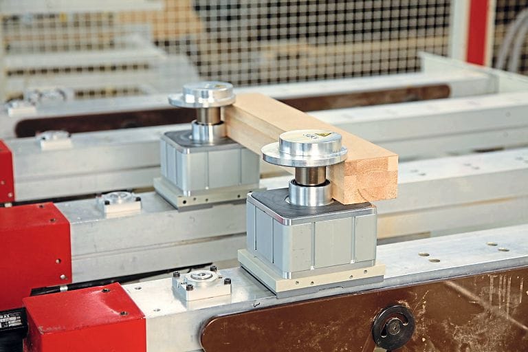 Schmalz stellt auf der Ligna leistungsstarke Systeme für die manuelle und automatisierte Vakuum-Handhabung in der Holz- und Möbelindustrie vor. Ein Highlight ist die neue VCMC-Baureihe. Das mechanisch klemmende Spannsystem für CNC-Bearbeitungsmaschinen mit Konsolentisch halte auch schmale Werkstücke wie Rahmenteile zuverlässig. Dabei passt der Anwender laut J. Schmalz den exzentrisch positionierten Spannteller erstmals werkzeuglos an die entsprechende Werkstückhöhe an. Angeschlossen an das Vakuumsystem des Bearbeitungszentrums, erreiche VCMC eine Spannkraft von bis zu 700 Newton. Durch Nesting, ein Trendthema in der verarbeitenden Industrie, lassen sich jegliche Formen mithilfe eines Verschachtelungsplans so anordnen, dass wenig Verschnitt entstehe. Diesen Trend greift Schmalz auf, in dem das Unternehmen den Blocksauger VCBL-G K1 speziell für Nestingtische entwickelt hat. Es ist möglich, den Blocksauger direkt an der Rastertischplatte der CNC-Maschine zu platzieren, ohne diese Platte vorher abzunehmen. Dies erspare dem Anwender einen Rüstvorgang an der Maschine, wodurch sich lange Stillstandzeiten vermeiden lassen. Durch die geringe Arbeitshöhe von 30 Millimeter lässt sich VCBL auch in Dreiachs-Bearbeitungszentren mit niedrigen z-Höhen einsetzen. Für automatisierte Prozesse stellt Schmalz Vakuum-Komponenten sowie Greifsysteme für den zuverlässigen Transport der Holzwerkstücke aus. Dazu zählen der Flächengreifer FMHD für verleimte Bretter oder sägeraue Schnitt- und Hobelware sowie das Flächengreifsystem FMP-S. Es punkte bei der schnellen Handhabung von Möbelteilen und Zwischenhölzern. Als Anwendungsbeispiel ist auf dem Messestand eine Roboterzelle mit entsprechendem Flächengreifer und Aufspannsystem aufgebaut. Zur Beladung der Maschinen mit Holz-, Span- oder OSB-Platten zeigt der Vakuum-Experte mehrere Lösungen auf der Messe. Besucher erwartet u.a. eine Hängekrananlage mit dem Vakuum-Schlauchheber JumboErgo 85. Als Greifer setzt Schmalz am Jumbo den Flächengreifer FM ein, mit dem sich Bretter oder Werkstücke mit Aussparungen prozesssicher handhaben lassen. Des Weiteren testen die Besucher JumboErgo 110 mit pneumatischer Schwenkeinheit. Wie das ergonomische und ermüdungsfreie Handhaben in niedrigen Räumen möglich ist, zeigt Schmalz anhand seines neuen Flachauslegers aus Aluminium. Basierend auf dem Baukasten für Schwenkkräne, ist er speziell für Anwendungen im unteren Traglastbereich ausgelegt.