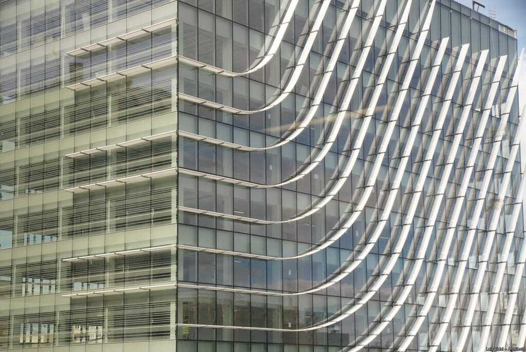 Die geschickte Nutzung des Tageslichts und der Wunsch, dem Gebäude eine starke, es von seiner Umgebung abhebende Identität zu geben, waren zwei tragende Säulen des Architekturprojekts. Ein Hauptfokus lag auf der Installation einer neuen vorgehängten Fassade mit einer ausgeprägten vertikalen Modulation. Diese ist mit dem selektiven Sonnenschutzglas SunGuard SN 70/41 von Guardian hergestellt. Für zusätzlichen Sonnenschutz sorgen 60 Zentimeter weit überstehende, Schatten spendende Lamellen. In einem Abstand von 15 Zentimeter zur Fassade angebracht, erleichtern sie Reinigungs- und Wartungsarbeiten. Gemeinsam mit dem Glas von Guardian entfalten sie die angestrebte hohe Wirkung.