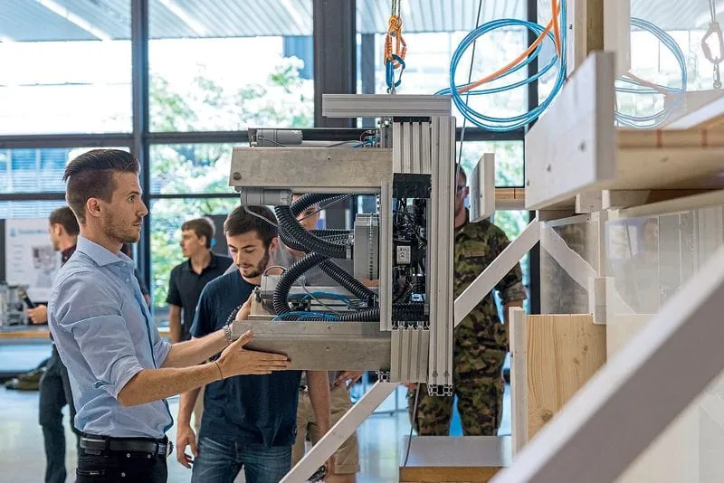Dazu sind sie an Seilwinden befestigt, die auch zur Reinigung von Hochhäusern genutzt werden. Künftig will Vetrox für die riesigen Glasflächen Robotersysteme einsetzen. Um die Entwicklung von Roboter-Prototypen voranzutreiben, hat der Instandsetzungsspezialist angehende Maschinentechnik-Ingenieure der Hochschule für Technik Rapperswil (HSR) angeheuert. In zirka 10.000 Arbeitsstunden tüftelten zehn Teams zwei Semester lang an den Trägersystemen, jetzt haben sie dem Unternehmen fünf Modelle präsentiert. An einer nachgebauten Fassade simulierten sie den Einsatz ihrer Roboter, die die Aufgabe haben, dort Glas-Schleifmaschinen zu positionieren und für Reparaturarbeiten zu befestigen. Für den Industriepartner dürfte die Rechnung aufgegangen sein. Zum Preis von zirka 60.000 Franken (etwa 52.100 Euro) für Materialkosten erhielt die Firma zehn Prototypen von Roboter-Trägersystemen.