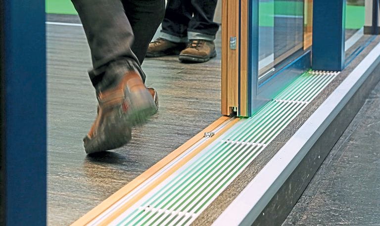 Neu im Kneer-Portfolio ist außerdem die Hebeschiebe-Tür HST 115 Sky Axxent aus Holz/Alu, die sich absolut bodenbündig einbauen lasse. Der Übergang von innen nach außen verschwinde. Mit Nullbarriere-Schwelle setzt die Tür Kneer zufolge nicht nur Maßstäbe hinsichtlich der Barrierefreiheit, sondern auch beim Design. Die komfortable Soft Close-Technik sorge für ein angenehmes Schließen. Sky Axxent erweitert die bereits vorgestellte Hebeschiebe-Tür HST 115 Sky Plus um eine weitere Variante für mehr Licht, eine höhere Dichtigkeit, mehr Komfort und mehr Sicherheit. Auch die Hebeschiebe-Tür HST 95 Classic/Art hat Kneer in vielen Details verbessert. Unter anderem seien die Flügelbreiten um bis zu 30 Millimeter reduziert, um noch schmalere Ansichten zu erzielen. Alle Hebeschiebe-Türsysteme im Bereich Holz/Alu und Holz stattet Kneer mit der neuen Beschlagtechnologie 4.0 aus. Mit einem weiterentwickelten Dichtungssystem und nach erfolgtem Sicherheitsupgrade habe sich bei allen Systemen die bisherige 15 Millimeter hohe Laufschiene gegen eine fünf Millimeter hohe Schiene ersetzen lassen.