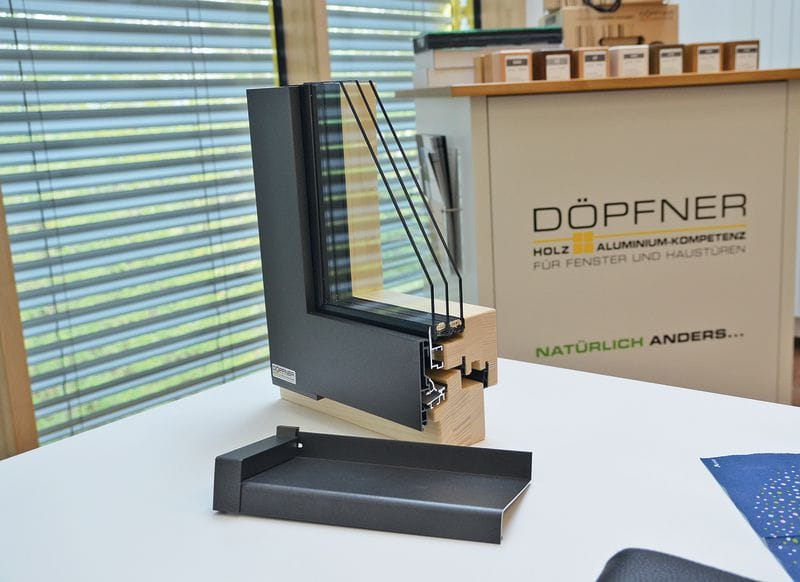Und was ist mit Neuigkeiten bei Holz? „Hier bieten wir aktuell drei neue Haustürmodellreihen, und nach der Einführung des Premium-Systems stehen auch bei Holzfenstern Neuentwicklungen an“, sagt Frank Döpfner auf unsere Nachfrage. Sobald die Oberflächenbeschichtung für Holzfenster – wie schon jetzt bei Türen machbar – noch ausgereifter sei, stehen dem Holzfenster seiner Ansicht nach ohnehin goldene Zeiten bevor. Für Türen verwendet der Hersteller aus Franken derzeit die Adler-Oberflächensysteme Protor und Holzöl.