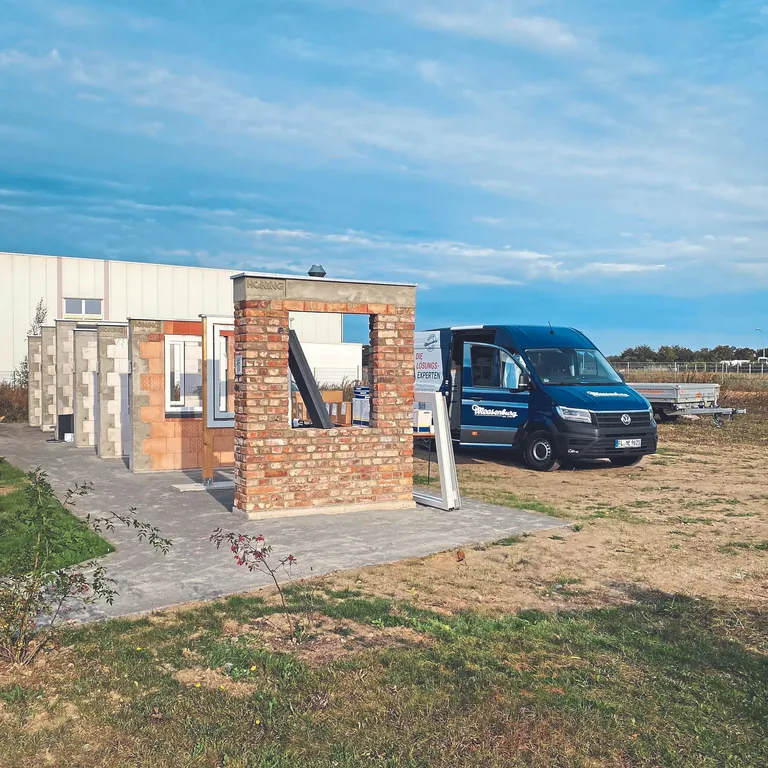 Musterecke mit dem Vorwandmontagesystem Triotherm+ von der Meesenburg-Marke Blaugelb. Im Oktober erhielt das Produkt den europäischen Verwendbarkeitsnachweis (ETA). - © Foto: Meesenburg