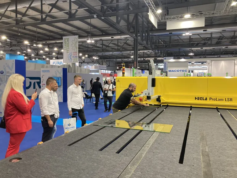 Hegla zeigte in Mailand die Verbundglasschneidanlage Pro Lam LSR, die mit ihrer patentierten Laserdiodenheizung den Angaben zufolge zu einer Erfolgsinnovation des Hegla-Maschinenbaus geworden ist. "Zwanzig Prozent und mehr beschleunigt die fokussierte Wärmeeinbringung in die Schnittkontur den Schneidprozess für eine noch höhere Produktivität", heißt es in einer Produktbeschreibung. "Die umgebende Kante bleibt dabei kalt, so dass zugleich die Gefahr einer Delamination systematisch reduziert ist und Folgeschnitte ohne Wartezeit möglich sind".