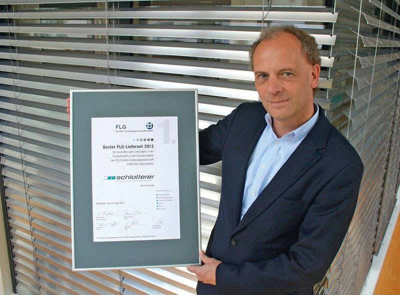 Schlotterer Sonnenschutz Systeme in Adnet hat von der Fenster-Leistungsgemeinschaft (FLG) den FLG Lieferanten-Oscar 2013 erhalten. Das österreichische Unternehmen für außen liegenden, nicht textilen Sonnenschutz setzte sich gegen 33 weitere Lieferanten durch und sicherte sich als erstes Unternehmen den Award bereits zum zweiten Mal. „Wir freuen uns sehr über den FLG Lieferanten-Oscar, weil er eine Bestätigung für die Leistung des gesamten Teams Schlotterer während eines ganzen Jahres ist. Die Auszeichnung zeigt, dass wir bei allen 15 Bewertungskriterien, wie etwa Produktinnovationen, Qualität, Preisgestaltung, Lieferzuverlässigkeit und Lieferzeit, im Spitzenfeld liegen“, freut sich Schlotterer-Geschäftsführer Peter Gubisch.