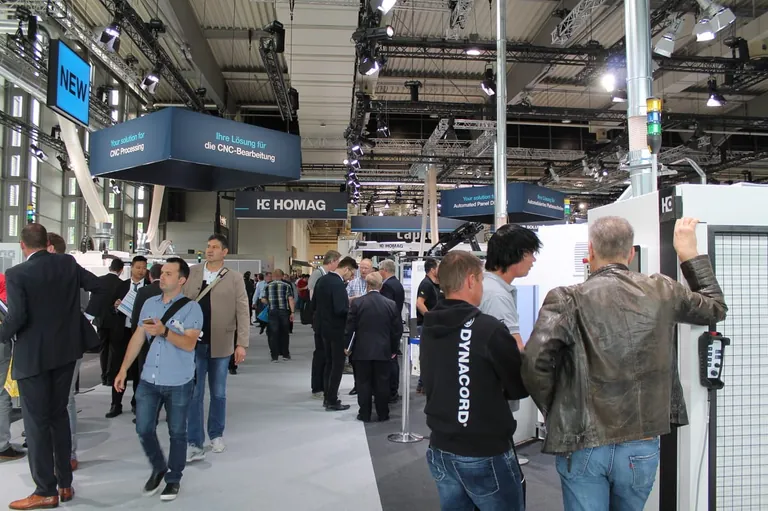 Beim Gang über die Messe wie an vielen Ständen fühlte sich der Besucher zeitweise in einen Bienenstock versetzt – so herrschte auf dem Homag-Stand, der einen Großteil der Halle 14 ausfüllte, geschäftiges Treiben. - © Krüger