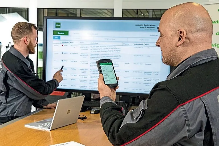 Alle Aufträge, die seit September 2018 bei C.W. Dallwig eingehen, werden nunmehr über die neue Software abgewickelt. Nach der Auftragsannahme via Telefon oder E-Mail werden die Kundendaten in eine Datenbank übertragen. Das morgendliche Briefing findet an einem interaktiven Whiteboard statt. „Der wichtigste Punkt besteht darin, dass wir mehr Zeit für die Anliegen unserer Kunden haben. Auch Verwaltungs- und Controllingaufgaben sind einfacher geworden“, resümiert Geschäftsführer Andreas Grimm. Von der Auftragsvergabe bis hin zur Terminvereinbarung garantiere C.W. Dallwig den Kunden eine Reaktionszeit von maximal 24 Stunden. „Zurzeit sind wir trotz guter Auslastung bei weniger als zwölf Stunden“, freut sich der Firmenchef. Auch die Bearbeitungsdauer der Einzelaufträge habe sich dank des permanenten Überblicks über alle Aufträge verkürzt.