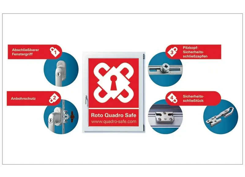 Roto bietet Fensterherstellern und Bauelementehändlern die verzahnte Produkt- und Vermarktungskampagne Quadro Safe an. Gegenwärtig seien auf der Webseite www.quadro-safe.com mehr als 1.000 Teilnehmer aus Deutschland, Österreich und der Schweiz als Partnerfirmen registriert, erläutert Astrid Fridrich, die Leiterin der Sortimentsvermarktung für Zentraleuropa bei Roto. Das seit dem Start der Initiative im Jahr 2014 praktizierte Kundennutzen-Konzept ist für sie unverändert gültig: „Wir schnüren für die Betriebe ein Gesamtpaket, mit dem sie fundiert informieren und beraten, Kompetenz dokumentieren und ihren Kunden echten Mehrwert verkaufen können.“