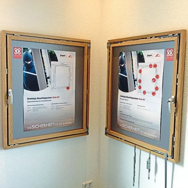 Bereits seit 2015 gehört auch die Schreinerei Bayer GmbH im baden-württembergischen Waldkirch zu den Kampagnenpartnern. Geschäftsführer Samuel Ganter attestiert Roto, dieses Thema früh erkannt zu haben. Die Materialien eigneten sich für eine fundierte Endkundenberatung. Obwohl Bauherren und Hausbesitzer gerade durch aktuelle Einbruchserien in der Region zunehmend sensibilisiert und durch die Polizei häufig vorinformiert seien, treffe man in der Realität oft auf Halbwissen. Deshalb komme es darauf an, richtig aufzuklären. Dabei greife die bei der Kriminalpolizeilichen Beratungsstelle gelistete Handwerksfirma gern auf Quadro Safe-Instrumente zurück. Als Beispiele nennt Ganter angepasste Flyer und Poster. Außerdem ist in seinen Ausstellungsraum eine Infowand mit zwei Fensterflügeln integriert, die die Beschlagteile zeigt und den Unterschied zwischen Basissicherheit und RC 2 erkennbar macht. Das Resultat: „Unsere Kunden verstehen schnell, um was es geht.“