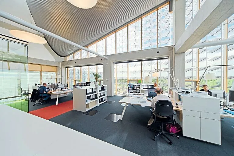 Im Tagesverlauf wandern die Module mit der Sonne mit, so dass die Aussicht nach draußen erhalten bleibt. „Im Gebäude ist die Bewegung nicht spürbar“, weiß van Riet. Dank der transparenten Ausführung und der Durchlässigkeit von Streulicht sorge Lumiduct für hohe Tageslichteinträge. Gleichzeitig werde das direkte Licht abgeblockt, was wiederum zu einem stabilen Raumklima führe. Die Überhitzung der Innenräume im Sommer sowie starke Blendungen z.B. auf Computerbildschirmen seien tabu. Zudem entfiele die Notwendigkeit, eine Klimanlage oder innen liegende Beschattungen zu installieren, und ließe sich der Bedarf an Kunstlicht reduzieren. Fazit von van Riet: „Lumiduct ist ideal für Bürogebäude mit großen Glasflächen, die der Sonne ausgesetzt sind.“