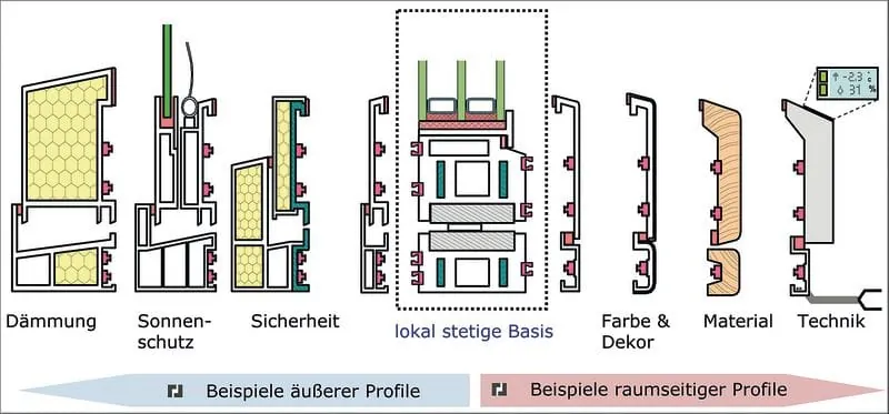 Diese Abbildung zeigt am Beispiel Fenster, wie modulares Bauen aufgebaut ist.