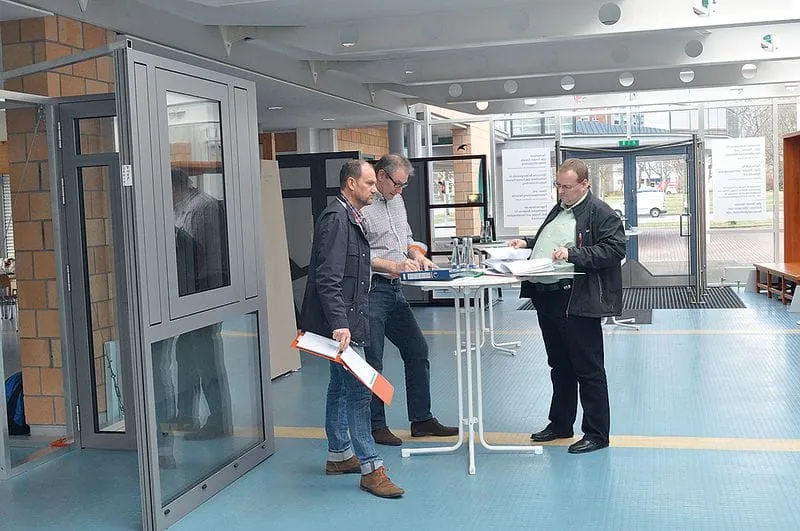 „Seit gestern ist die Anspannung gesunken“, sagt Steffen Armbrust und wirkt dabei doch etwas ratlos. Denn machen kann er nichts mehr. Jetzt heißt es nur noch, auf die Bewertung des Meisterstücks zu warten. „Das ist nervig. Man möchte jetzt schon endlich die Note erfahren.“ Die schlimmste Zeit haben die 13 Glasergesellen aus Baden-Württemberg (zehn), Rheinland-Pfalz (zwei) sowie Bayern im Alter zwischen 20 und 45 Jahren aber hinter sich. Schließlich liegen zwei nervenaufreibende Wochen hinter ihnen, in denen sie ihr Meisterstück fristgerecht anfertigen und dieses in der GFF-Akademie zur Bewertung aufbauen mussten. „Man kommt abends heim und fragt sich, warum man noch nicht weiter ist. Dann überlegt man, was am nächsten Tag ansteht“, gibt Armbrust Einblicke in das Gefühlsleben der vergangenen Tage. Oft sei er erst gegen neun oder halb zehn Uhr abends nach Hause gekommen. Neben der Arbeit am Meisterstück stand das alltägliche Geschäft an. Vorbereitet auf die Meisterprüfung haben sich die Prüflinge nämlich berufsbegleitend, anderthalb Jahre lang in einem Vorbereitungskurs an der GFF-Akademie. „Bei dem Teilzeitkurs tragen die Prüflinge mehr Eigenverantwortung. Entsprechend größer ist die Streuung bei den Noten im theoretischen Teil“, erklärt GFF-Akademieleiter Waldemar Dörr, der mit dem aktuellen Kurs indes sehr zufrieden ist. Besonders die Meisterstücke seien alle auf einem sehr hohen Niveau. Im Trend liegen dieses Jahr Haustüren. „Wir motivieren die Prüflinge dazu, Projekte zu realisieren, die dann auch bei einem Kunden verbaut werden.“