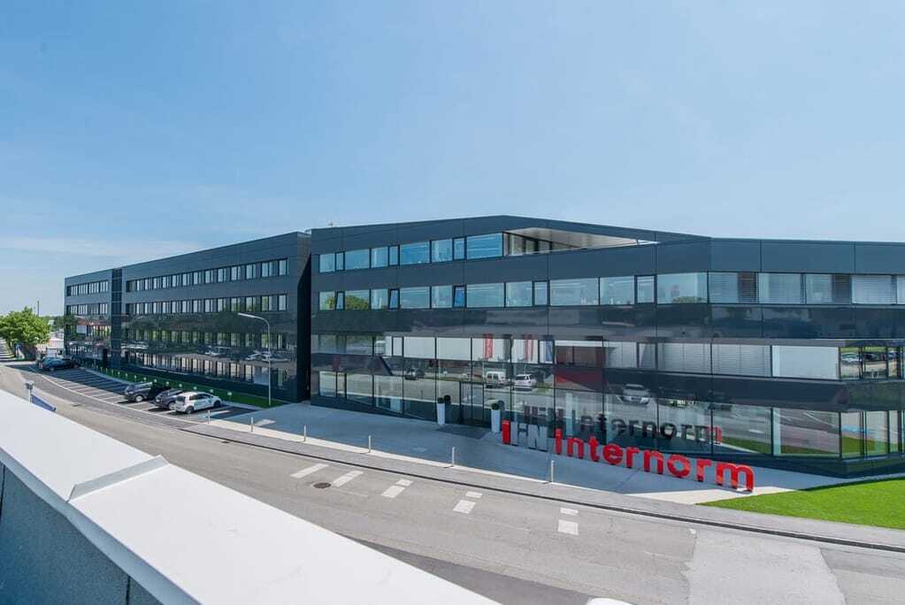Der Gebäudekomplex sei nicht nur eine architektonische Visitenkarte, sondern auch ein Kompetenzbeweis, denn die Fenster-, Fassaden- und Sonnenschutztechnik stamme aus dem eigenem Haus und vom Schwesterunternehmen aus dem IFN-Netzwerk. Im Praxiseinsatz zu sehen sind die neuesten Technologien aus dem Internationalen Fensternetzwerk IFN: Von Internorm selbst stammen die hoch wärmedämmenden Kunststoff/Aluminium-Fenstersysteme der neuesten Generation mit 3fach-Isolierverglasung, SOLAR+ Beschichtung und voll im Rahmen integriertem I-tec Lüftungssystem mit Wärmetauscher, Nurglaselemente und Glasschiebetüren in XL-Dimensionierung sowie sämtliche sonstigen Glasflächen im Innenbereich. Die Raffstoren mit Tageslichtlenkung RETROLux stammen von Schlotterer aus Adnet, die energieeffiziente Aluminium-Fassade von HSF und die entsprechende Montagetechnik vom Fassadenspezialist GIG aus Attnang-Puchheim.