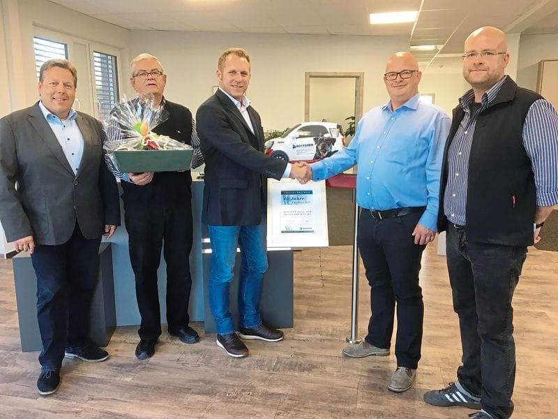 Mit Böttcher Fenster und Türen aus Gnutz feierte die Profine Group Ende des vergangenen Jahres das 40. Partnerschaftsjubiläum. Von Beginn an setzte der Fachbetrieb aus Schleswig-Holstein auf die Profile der Marke Kömmerling. Bei der Übergabe der Jubiläumsurkunde sagte Sascha Tiemann, Gebietsverkaufsleiter von Profine: „Wir freuen uns sehr, einem Fenster-Profi der ersten Stunde für vier Jahrzehnte Partnerschaft und seine Verbundenheit mit unserer Marke danken zu können. Wir wissen diese Loyalität zu schätzen und hoffen auf viele weitere gemeinsame Jahre.“