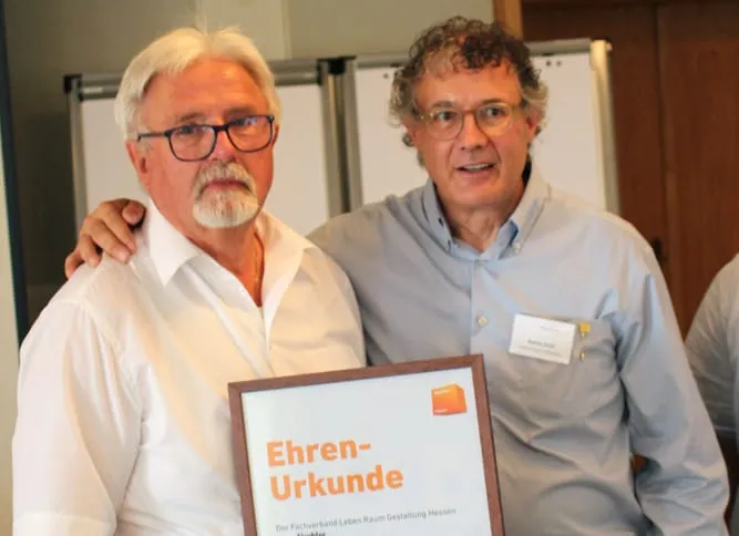 Eine besondere Ehre erhielt Reinhard Nau während der Mitgliederversammlung des Fachverbands Leben Raum Gestaltung Hessen/Rheinland-Pfalz. Angesichts seiner langjährigen ehrenamtlichen Tätigkeit im Vorstand und seiner Verdienste im Rahmen der Fusion beider Verbände wurde er zum Ehrenpräsidenten ernannt.