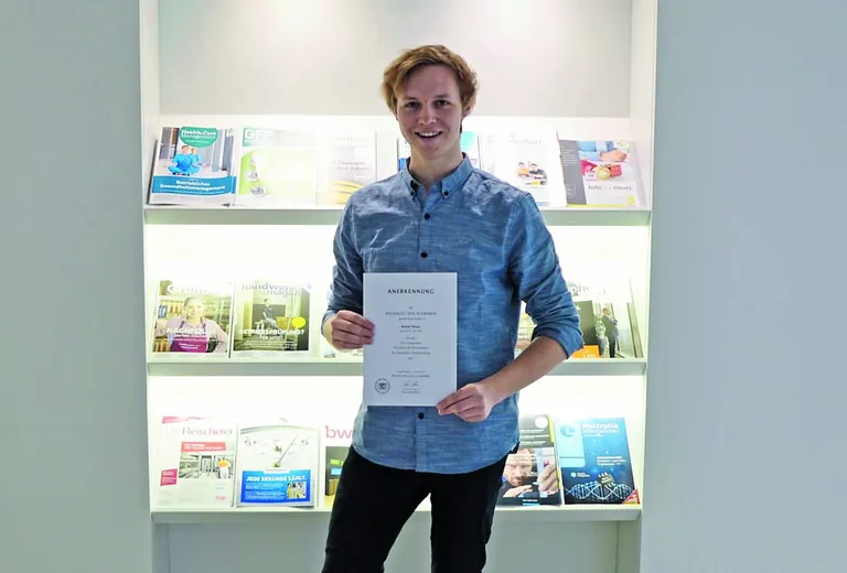 Ausgezeichnete Ausbildung bei GFF-Herausgeber Holzmann Medien: Absolvent Robin Moser (Fachinformatiker Anwendungsentwicklung) erhält den Staatspreis der Regierung von Schwaben für seine herausragenden Leistungen.