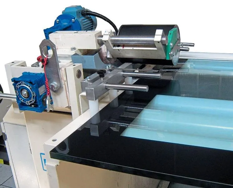 Die Beschichtungsanlage Glassline emailliert die Ränder von Floatglasscheiben im Rollercoating-Verfahren. - © Rollmac
