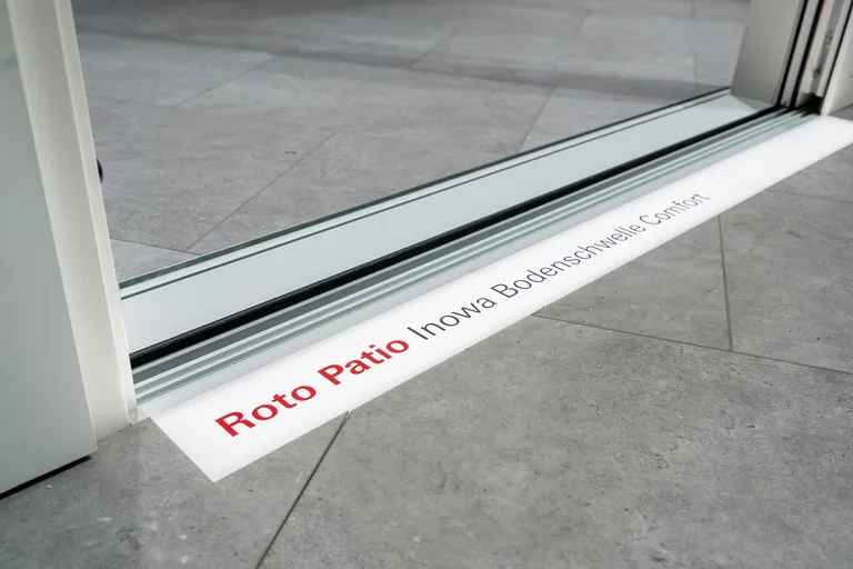 Optimal abgestimmt auf das Beschlag- und Dichtungssystem „Roto Patio Inowa | Max“ ist die neue „Bodenschwelle Comfort“. Sie ist barrierefrei nach DIN EN 18040 und überrollbar nach ift-Klasse 5. - © Roto