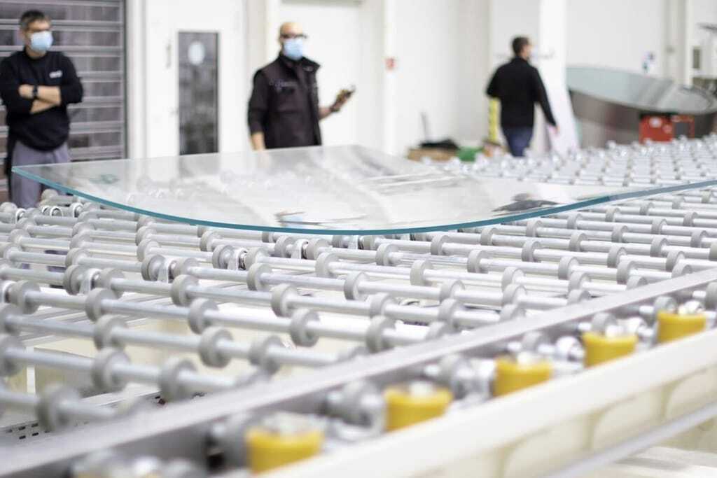 Eine neue Technologie ermöglicht die schnelle und genaue Umstellung des Biegeradius, so können Projekte mit verschiedenen Geometrien schnell produziert werden, heißt es. Abhängig von der Breite können Gläser mit einem Mindestradius von 1.000 Millimeter gebogen werden.