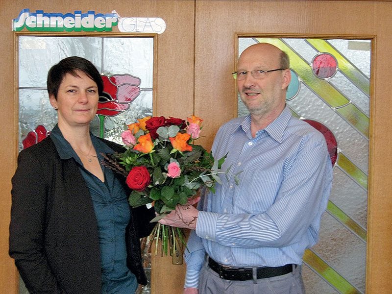 Der Handwerksbetrieb Schneider Glas mit Sitz in Bergisch Gladbach freut sich über ein besonderes Jubiläum. Glasermeisterin Barbara Muders ist dem Unternehmen seit ihrer Ausbildung zur Glaserin vor 30 Jahren treu. Glasermeister und Inhaber Peter Schneider erinnert sich: „Aufgrund ihrer sehr guten Leistungen konnte sie bereits nach zweieinhalb Jahren die Gesellenprüfung ablegen.