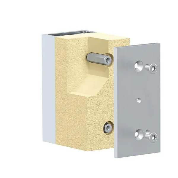 Die Aluschiene zur Vormontage und Anbindung an den Baukörper deckt Längen von bis zu 3.000 Millimeter ab. Die Einschubplatten aus Edelstahl mit zugfesten Gewindestangen lassen sich im Tragprofil verschieben. Dadurch ist die Montage der Anbauelemente unabhängig davon, wie die Schiene am Baukörper befestigt wird. Zur Verfügung stehen fünf Breiten von 48 bis 120 Millimeter; die Dämmkörper sind in Dicken von 50 bis 315 Millimeter erhältlich. Außerdem sind Aluminium-Anputz- bzw. -Anschlussplatten optional lieferbar.