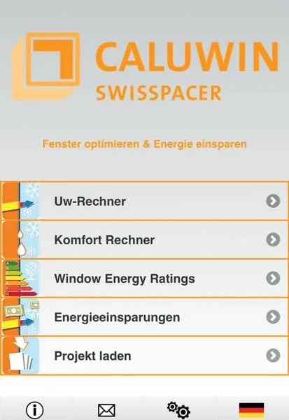 2. Schritt: Öffnen Sie den U w -Rechner und konfigurieren Sie ein Fenster nach Bedarf. Caluwin ist online auf www.caluwin.com sowie als App für iOS- und Android-Geräte verfügbar.