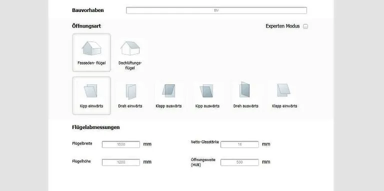 Im sog. Expertenmodus ist die Auswahl an Antrieben ungleich höher. Hier werden nicht nur die kleinstmöglichen Antriebe für das jeweilige Fenster aufgeführt, sondern alle infrage kommenden – einschließlich Sonderantriebe. "Wenn ich an einem Bauvorhaben verschiedene Flügelabmessungen habe, dann möchte ich nicht unbedingt an jedem Fenster einen anderen Antrieb haben", nennt Jersch als Szenario. Über den Expertenmodus wähle der Kunde einen Antrieb aus, der an allen Elementen einsetzbar sei. "Für den Fensterbauer bedeutet das weniger Arbeit." Wie Fensterbauer mit dem Esco-Rechner (www.esco-online.de/e-business/antriebsrechner) den richtigen Antrieb finden, erläutert GFF im Folgenden Schritt für Schritt.