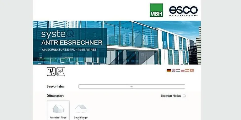 Mit seinem Antriebsrechner bietet Esco einen Konfigurator, der die Arbeit von Fensterbauern effizienter macht. Kunden definieren damit schnell und einfach den richtigen Antrieb für ihr Fenster. "Wir haben den Antriebsrechner entwickelt, um es dem Kunden einfacher zu machen, sich beim Thema Antriebe zurechtzufinden", sagt Manuel Jersch, Antriebsexperte bei Esco, im Gespräch mit GFF. Wer nur den Katalog durchblättere, sei aufgrund der großen Bandbreite schnell überfragt, welcher Antrieb aus dem Esco-eigenen Systeq-Sortiment der richtige sei. Der Antriebsrechner schaffe Abhilfe: "Mit den vorgeschlagenen Antrieben ist der Kunde auf der sicheren Seite."