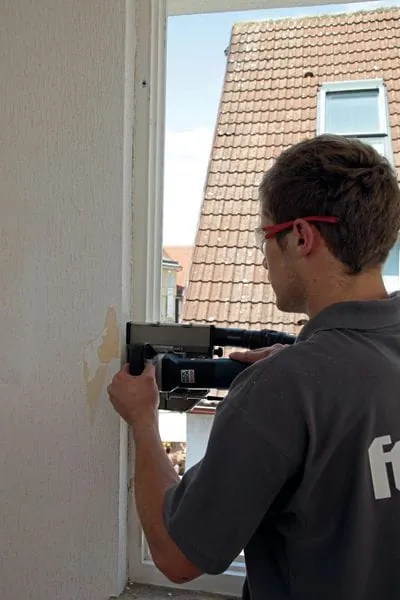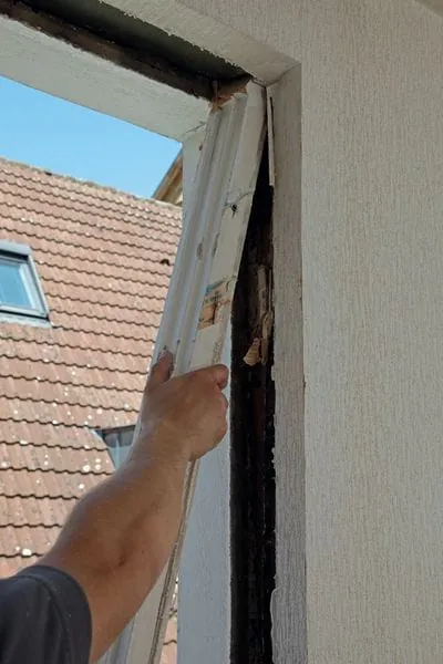 2. Schritt: Entnehmen Sie die alten Rahmenteile. Es verbleibt eine Vertiefung im Mauerwerk, die sog. U-Ausnehmung.
