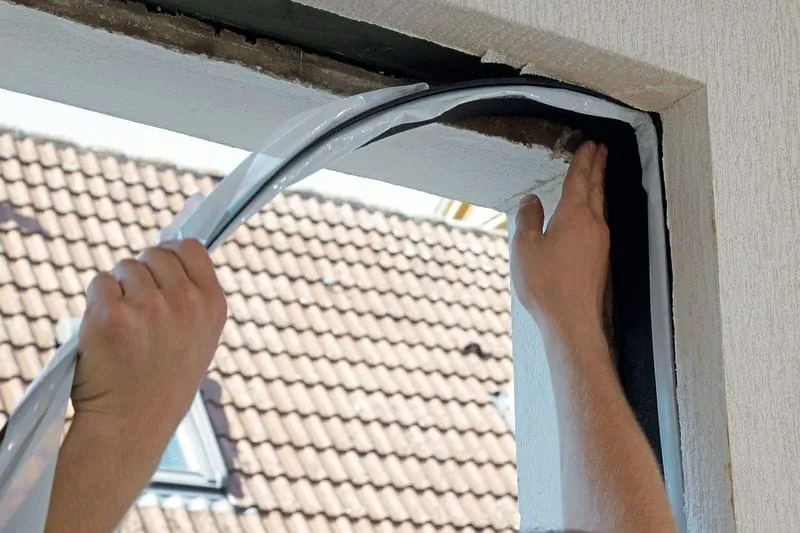 4. Schritt: Montieren Sie das Fugendichtband in den Ecken umlaufend, indem Sie den steifen Bandrücken scharfkantig umknicken.
