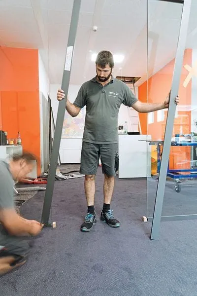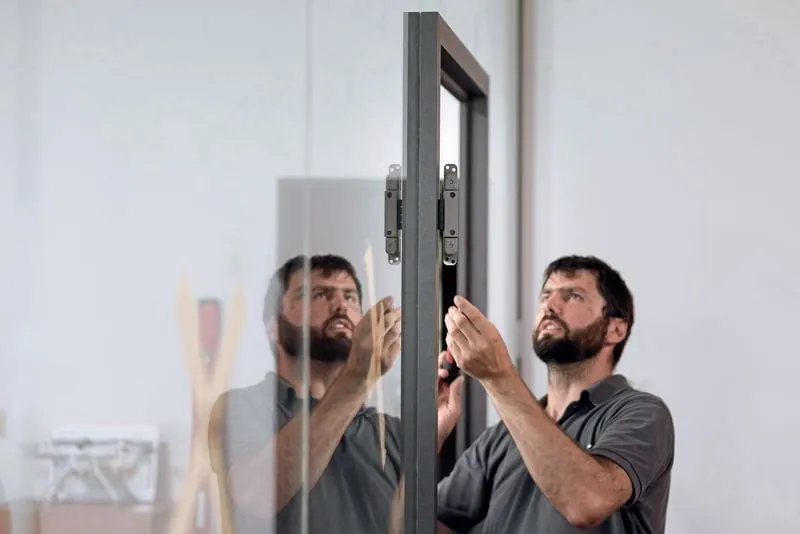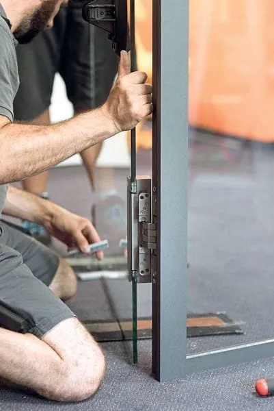 Das macht das System universell: Zum einen lassen sich Holz- gegen Glastüren und umgekehrt austauschen, zum anderen lässt sich in größeren Objekten mit Türen aus unterschiedlichen Materialien ein einheitlicher Architekturansatz verfolgen. Wie Verarbeiter das Bandsystem Pivota DX Glass in Ganzglastüren einbauen, erläutert GFF Schritt für Schritt im Praxistipp.