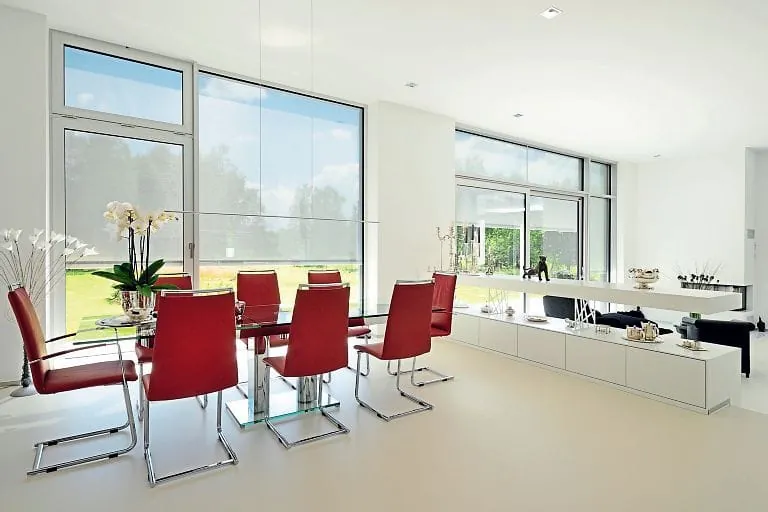 Große Fensterfronten prägen heute moderne Bauten. Sie schaffen helle Räume und bringen gesundes Licht in die Wohnungen. Speziell im Winter sind die warmen Sonnenstrahlen der tief stehenden Sonne sehr willkommen. Im Sommer kehrt sich die Lage jedoch um. Wer seine Wohnräume vor Überhitzung bewahren will, muss dafür sorgen, dass die heiße Sonne im Sommer die Wohnräume nicht aufheizt, und diese nachts auskühlen.
