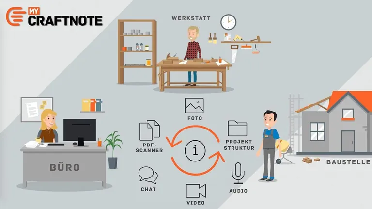 Als Plattform für den ständigen Austausch aller Mitarbeiter untereinander verbindet die App Baustelle, Büro und Werkstatt. Der Monteur macht auf der Baustelle ein Foto und die App fügt es direkt dem dort angelegten Projekt hinzu. Dank der Cloud-Anbindung ist es sofort auf allen mit der App ausgestatteten Endgeräten verfügbar. Auch andere auftragsbezogene Informationen (seien es Absprachen mit Bauherren und Architekten, Bautenstände und Mängel, Status und Fortschritt eines Projekts oder die bisher erbrachten Leistungen) erfassen die Mitarbeiter mit dem Tool, sie halten diese in Sprachnachrichten und Texten oder auf Bildern und Videos fest. "Informationen gehen so auf dem Weg von der Baustelle ins Büro nicht verloren", sagt Sieber. Die App ist nach seinen Angaben intuitiv zu bedienen.