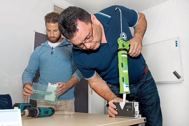 Alle Blicke sind nach vorne gerichtet, als Andreas Zimmermann, verantwortlich für technische Fachplanung, Projektplanung und Anwendungstechnik bei Tremco Illbruck, das erste von zwei Ausbildungsmodulen zum TÜV-zertifizierten Montageleiter einleitet. Der Schulungsleiter nimmt ein goldenes, dickes Buch, das wie eine Bibel wirkt, in die Hand, hält es hoch und sagt: „Das ist der RAL-Leitfaden zur Montage, an diesem Wissen orientiert sich unsere Schulung.“ Als er eine Liste mit den inhaltlichen Schwerpunkten via Beamer an die Wand wirft, wird deutlich: Wer Verantwortung für die Montage trägt, der benötigt enormes Wissen und sollte mit dem nötigen Ernst an die Sache herangehen.