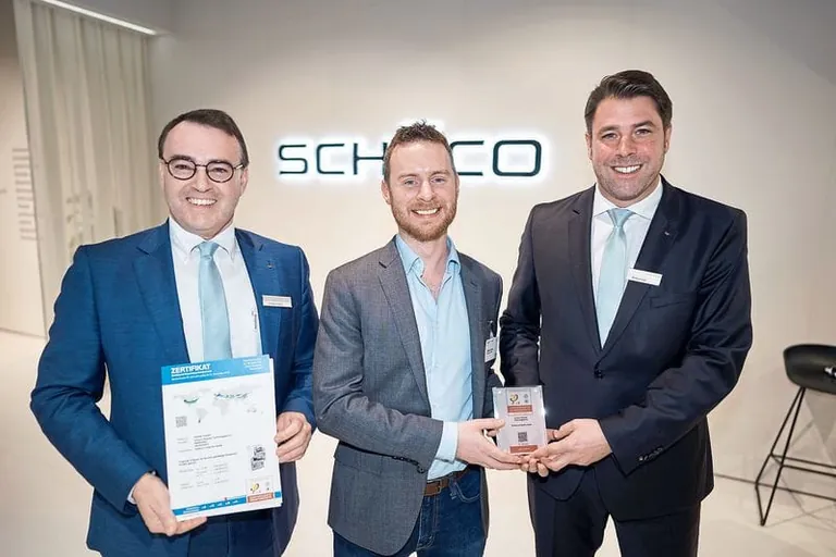 Das Passivhaus Institut in Darmstadt hat dem Kunststoff-System Schüco Living Alu Inside auf der Bau 2019 das Passivhaus-Zertifikat verliehen. Das Fenster kommt ohne Stahlarmierungen aus. Stattdessen setzt das Unternehmen auf seine patentierte Aluminium-Verbundtechnologie. Aufgrund des Verzichts auf die Stahlarmierung und durch seine Siebenkammern-Profilkonstruktion sowie die gezielte Positionierung der Aluminiumbänder ist das System wärmebrückenfrei, verspricht Schüco. Das Mitteldichtungssystem mit drei Dichtungsebenen und den Dämmzonen zur Aufnahme von Neopor-Blöcken erreicht nach Herstellerangaben einen Uf-Wert von 0,87 W/m²K. Die Passivhauseignung nach Dr. Feist werde durch den Einsatz zusätzlicher Neopor-Blöcke bei einem Uf-Wert von 0,79 W/m²K erreicht. Bei der Montage wirke sich der Verzicht auf Stahlverstärkungen positiv aus: Die Elemente seien leichter und einfacher zu handhaben. Da die Konstruktion zur Schüco Living Systemfamilie gehört, kann der Verarbeiter auf etliche identische Haupt- und Zubehörprofile sowie das passende Aluminium-Deckschalensortiment zugreifen.