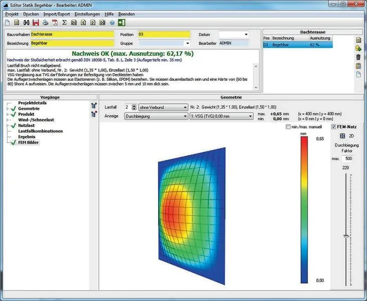 Alle Teilbereiche der DIN 18008 abgedeckt Statischer Nachweis auf Knopfdruck