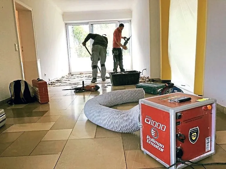 Der Arbeitsschutz empfiehlt die Verwendung eines Luftreinigers, der im Umluftbetrieb die staubhaltige Luft im abgegrenzten Arbeitsbereich – dank extrem hoher Filterleistung (HEPA 13) – filtert und diese gereinigt wieder ausbringt. Einen Luftreiniger positioniert der Betrieb laut Böl im staubigen Raum selbst oder, bei Platzmangel, davor – wichtig sei dann, dass der Ansaugschlauch des Geräts nahe der Staub-austrittsstelle positioniert wird. „In der Kombination mit Bau-Staubsaugern kann so Staub aus verunreinigter Luft im Arbeitsbereich oder in kompletten Räumen effektiv entfernt werden“, sagt Böl. Eine Ausbreitung von Staubemissionen in andere Bereiche, insbesondere in weiterhin bewohnte Räume, lasse sich dadurch verhindern. „Alle mehr oder weniger beteiligten Personen werden während der Baumaßnahmen vor Schmutz und Staub geschützt.“