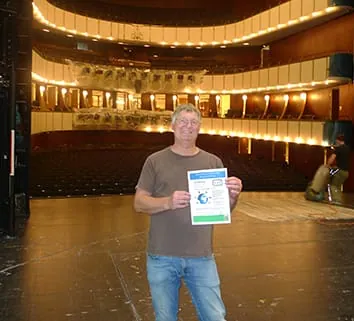 Peter Hinrich, Abteilungsleiter Schlosserei am Hamburger Thalia Theater mit frisch ausgestelltem AIUIF-Zertifikat.