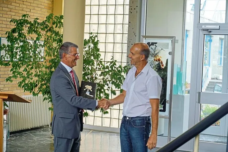 Obwohl sich Theo Schmitt-Steitz vor Kurzem in den Ruhestand verabschiedet hat, wohnte er der Freisprechungsfeier im August bei. Dass er sich der Glasfachschule Hadamar und dem Nachwuchs verbunden fühlt, liegt nahe. Schließlich war er Klassenlehrer, stellvertretender Schulleiter und Mitglied der Prüfungskommission für die Glaser an der Handwerkskammer (HWK) Wiesbaden. BIM Martin Gutmann nutzte die Gelegenheit, um Schmitt-Steitz mit einer Rede im Zuge der Freisprechungsfeier zu verabschieden: „Er hat uns über Jahrzehnte begleitet, als Fachlehrer, stellvertrender Schuldirektor, Prüfungsausschussvorsitzender und, und, und. Er war immer für die Glaser da und ein gern gesehener Gast.“ Er habe sich mit großer Hingabe um die Glaserlehrlinge gekümmert und sich im Landesinnungsverband (LIV) Hessen engagiert. „Wir sagen einfach nur: danke.“
