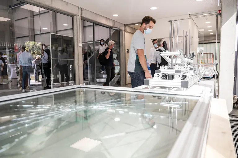Weitere Ausstattungs-Highlights des neuen Zentrums sind ein selbstentwickelter Glas-3D-Drucker, der auch Flachglas bedrucken kann, sowie ein Fassadenprüfstand mit den Abmessungen 3,6 Meter x 12 Meter, mit dem Forschende die Leistungsfähigkeit neuartiger Konstruktionen unter realen Witterungsbedingungen untersuchen können.