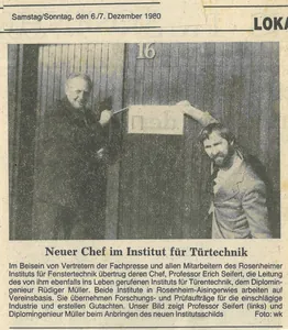 Zeitungsausschnitt aus Tageszeitung mit Rüdiger Müller als neuer Leiter des Institut für Türentechnik - © PfB