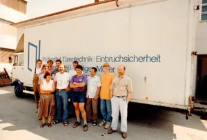 Um kurzfristig Prüfungen bei meinen langjährigen Kunden durchführen zu können, sah ich auch in finanzieller Hinsicht die einzige Möglichkeit darin, zunächst eine mobile Prüfstelle aufzubauen. Ich erblickte am Straßenrand einen 7,5 Tonner Lkw mit entsprechender Höhe und Überlänge, der zufällig zum Verkauf stand. Ohne großes Zögern erwarb ich ihn und mit meinem technisch gewieften Onkel Siegfried machten wir das sogenannte Prüfmobil für Prüfaktivitäten in den Bereichen Einbruchhemmung, Luftdurchlässigkeit, Schlagregendicht und Windbelastung startklar. So konnte ich bereits im Februar 1983 die ersten Prüfungen vor Ort in Hamburg durchführen. Es folgten einige Jahre mit dem Prüfmobil sowohl bei deutschen Türenherstellern als auch bei Vergleichsprüfungen im Bereich der europäischen Normung für den Einbruchbereich in Paris sowie Prüfungen in Italien und der Schweiz.
