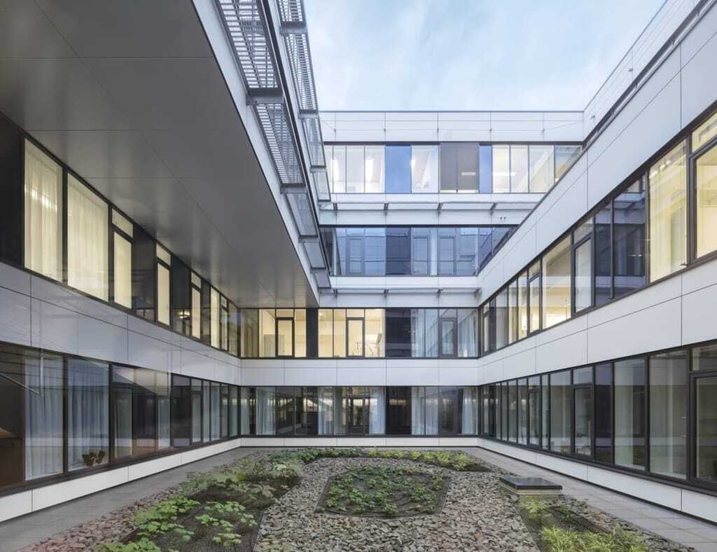 Im Mai 2019 hat das Interdisziplinäre Tumorzentrum (ITZ) in Freiburg eröffnet. Die zwei Innenhöfe bringen viel Tageslicht in das Gebäudeinnere, die Brandschutzverglasungen in den Innenhoffassaden sorgen für den notwendigen Schutz.
