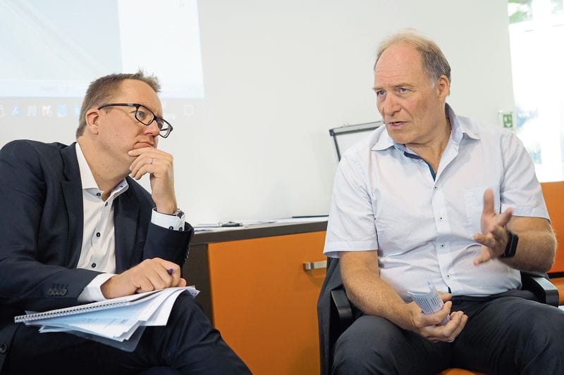 Plant, wer nach der DIN 18040 baut, am „eigentlichen Bedarf der späteren Nutzergruppe“ vorbei? In der Einleitung des Forschungsberichts „Bewertung der Barrierefreiheit von Bauelementen am Anwendungsbeispiel Fenster und Türen“, gefördert von der Forschungsinitiative Zukunft Bau und elf Industriepartnern, heißt es: „Zielsetzung des Forschungsvorhabens ist es, barrierefreie Anforderungsprofile für unterschiedliche Nutzergruppen zu definieren. Dazu sind Konzepte zu entwickeln, mit denen eine praxisnahe Bewertung der Barrierefreiheit von Bauelementen ermöglicht wird.“ Laut ift gibt es vielfältige Erkenntnisse zum tatsächlichen Bedarf der Betroffenen, Empfehlungen für Öffnungsarten sowie Kenngrößen zur Bewertung der Bedienkräfte und eben der Eignung von Türschwellen. Eine ist die Überrollbarkeit, der Begriff „Nullschwelle“ sei zu schwammig, sagt das ift und verweist auf niveaugleiche Schwellen mit Vertiefungen und höhere Rollwiderstände durch Teppiche und andere Bodenbeläge; die Überrollbarkeit sei in Österreich und der Schweiz normativ eingeführt. Christian Rager kündigte schon mal vorsorglich an: „Wenn die Schwellenfreiheit durch die Norm ausgehebelt werden soll, setzen wir uns zur Wehr.“ Kein Wunder: Alumat, dessen Geschäftsführerin seine Frau Claudia Rager-Frey ist, sieht sich seit 20 Jahren als technischen Vorreiter mit dem von Gründer Harry Frey entwickelten Wirkprinzip der Magnetdoppeldichtung. Institutsleiter Prof. Sieberath, ganz Wissenschaftler, beginnt die von GFF am 23. Juli in Rosenheim veranstaltete Diskussionsrunde mit einer Positionsbestimmung: „Barrierefreies Bauen ist eine Planungsaufgabe des Architekten.“ Dieser habe sicherzustellen, dass Türschwellen barrierefrei ohne Schwelle ausgeführt werden. „Daraus hat sich der Begriff ,Nullschwelle’ etabliert, den es normativ nicht gibt“, sagt er. Solche Türen würden sich im Neubau gut planen und umsetzen lassen: „Hier gibt es selten notwendige Ausnahmen, bei Einbruchhemmung gemäß Klasse RC3 und hohen Anforderungen an Schall- oder Brandschutz.“ Daher sollte „eine niveaugleiche Schwelle im Neubau ohne Wenn und Aber realisiert werden“.