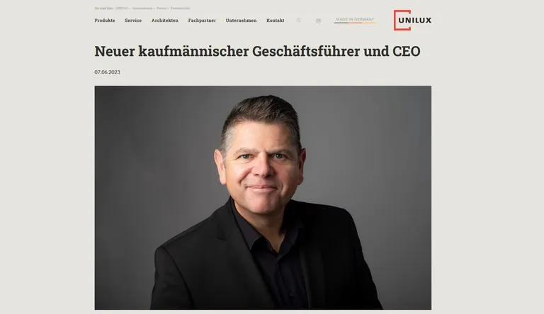 Beining wird Geschäftsführer: Unilux verkündet die Personalie auf seiner Website. - © Screenshot Unilux