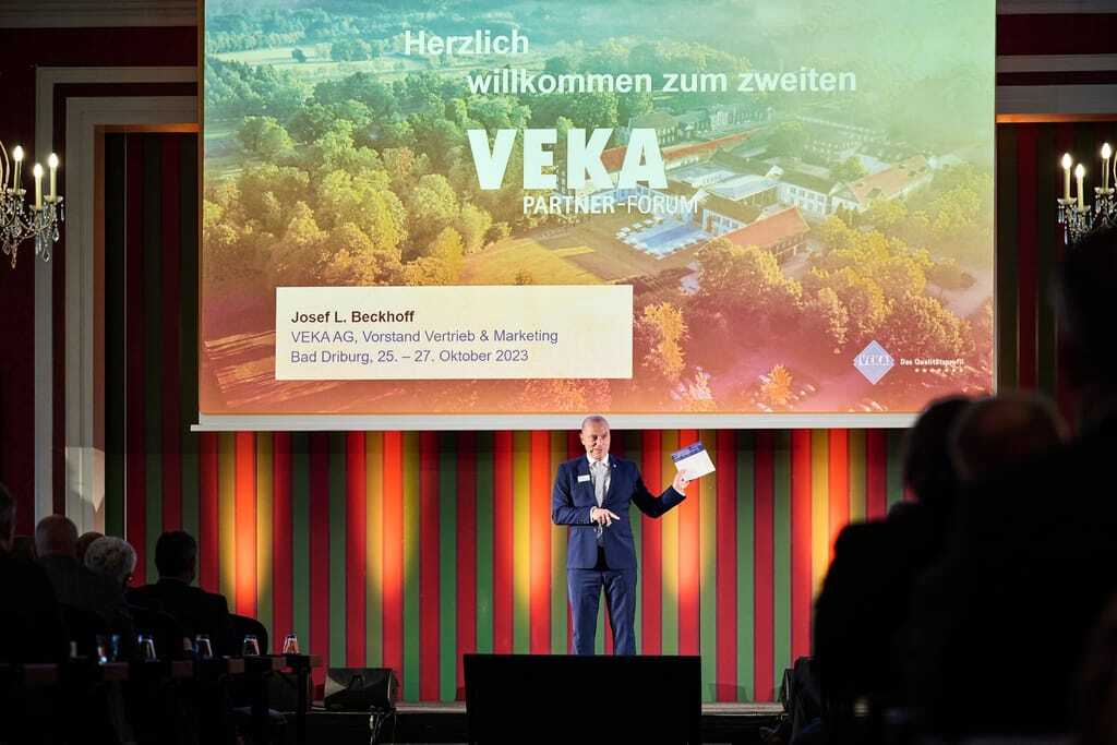 Bereits die Premiere des Partner-Forums hatte fassbare Resultate erbracht und wurde den Angaben zufolge von den Teilnehmenden positiv aufgenommen. Zur zweiten Auflage konnte Veka nun wieder etwa 100 Verarbeiter willkommen heißen. Die Fokussierung auf das Thema Nachhaltigkeit mit seinen vielfältigen Facetten kam bereits am ersten Tag zum Tragen. Nach der Begrüßung durch Beckhoff gab Alexander Scholle als Leiter des Inlandvertriebs Profile einen Überblick über das Geschäftsjahr 2023. Er übergab das Wort an Dr. Matthias Koch. Der Leiter des Ressorts Strategie & Corporate Social Responsibility (CSR) erläuterte den Partnern, wie das Prinzip der unternehmerischen Verantwortung in jeden Bereich von Veka hineinwirkt. Das Unternehmen habe sich über das PVC-Recycling hinaus schon früh einer enkelgerechten Unternehmensführung verpflichtet. Daher sei man heute immer besser in der Lage, ökonomischen Erfolg mit ökologischer Nachhaltigkeit zu verbinden.