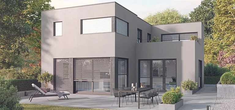 Die Vorteile haben den Metallbaubetrieb bewogen, das System LS Dark beim Neubau eines modernen Bungalows in Chemnitz zu verbauen. Dabei wurde das Raffstoresystem vom Alugla-Team in die hochwertigen Aluminiumfenster des Gebäudes integriert. "Auch im Schlafzimmer haben wir LS Dark eingesetzt und es kommt wirklich nahe an die Verdunkelung von Rollladen heran", sagt Trommler. Durch spezielle Bürstendichtungen zwischen Führungsschiene und Lamellen werde der Lichteinfall minimiert. Zudem entfallen durch den praktischen Seitenaufzug die sonst üblichen Texbandlöcher. "Dadurch kommen keine Sonnenstrahlen am Texband vorbei in den Raum und die Optik bei geschlossenen Lamellen wirkt noch ansprechender."