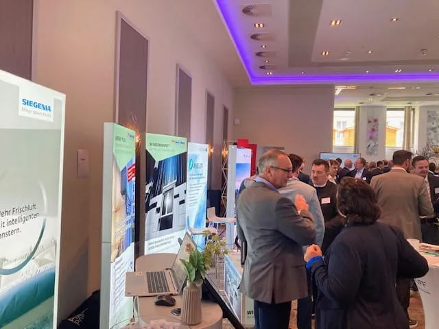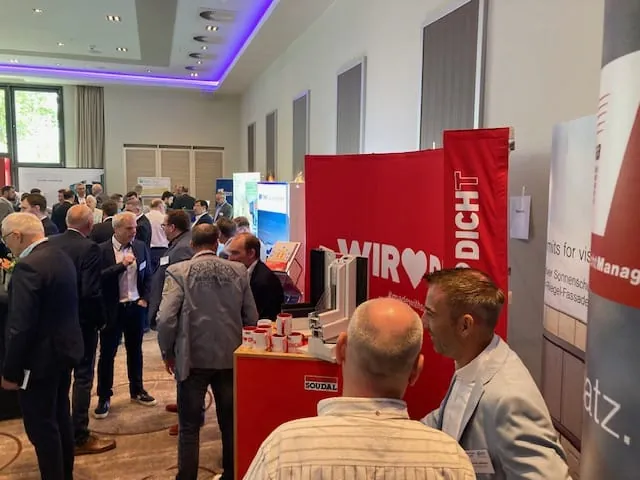Im Rahmenprogramm präsentieren sich eine Reihe von Branchenunternehmen in einer kleinen Ausstellung, darunter Gealan, Duotherm, Meesenburg, Warema, Soudal und Siegenia.