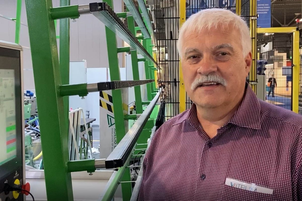Adelio Lattuada bietet zusammen mit seinem strategischen Partner Knittel Glass Roboterlösungen für alle Bedürfnisse und Anwendungen in der Glasindustrie an. Auf der Vitrum in Mailand stellten die Unternehmen eine Linie vor, die aus zwei Kantenschleifmaschinen, einer Waschmaschine und einem Roboter besteht. Jochen Günther von Knittel Glass erklärt die Merkmale der Workstation.
